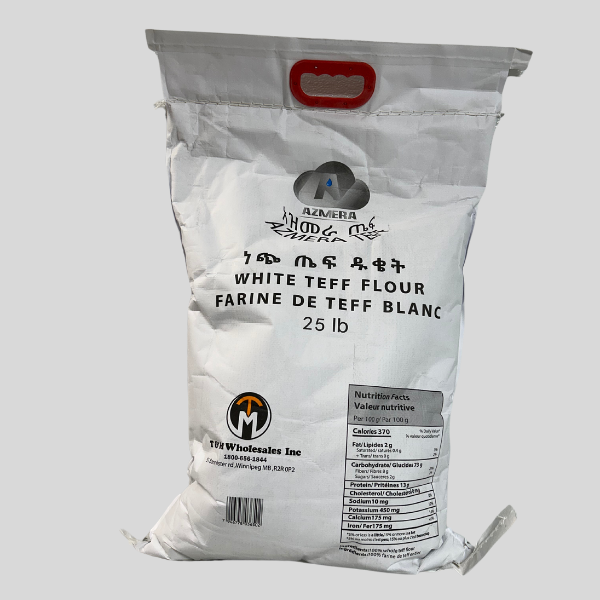 Azmera White Teff Flour is a finely milled, gluten-free flour made from 100% whole grain white teff. With its mild, slightly sweet flavor and smooth texture, this flour is perfect for both sweet and savory recipes. Packed with nutrients like fiber, protein, and iron, it’s a healthy and versatile ingredient ideal for everything from baked goods to traditional dishes like injera.